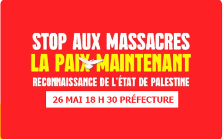 Publié le 21 mai 2025 A Gaza, le peuple palestinien meurt sous les bombes de l’armée israélienne. Plus de 50 000 morts déjà. Des femmes, des hommes et plus de 15 000 enfants, victimes d’un véritable nettoyage ethnique. Une famine délibérée, organisée par le gouvernement de Benjamin Netanyahou, menace des centaines de milliers de Gazaouis. […]